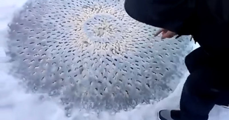 他們在結冰湖面上發現這個「驚悚詭異的罕見現象」,拉近後看到的畫面根本是惡夢啊…