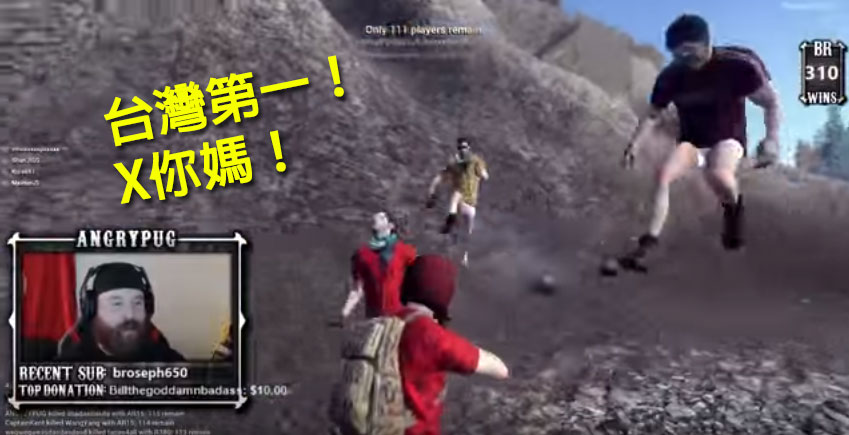 這個老外真的不知道為什麼,這麼愛台灣,接二連三一直激怒中國玩家…他口中一直大罵:「X你媽,台灣Number One」…